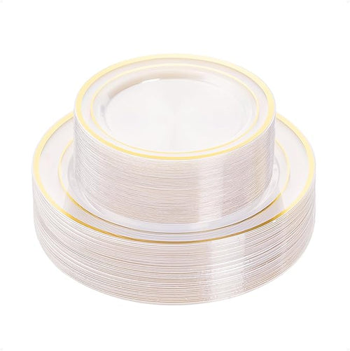 50PCS Clear Plastic Plate, Disposable Party Plates with 25 Dinner and 25 Dessert Plates, Plastic Plate for Party, Wedding and Birthday