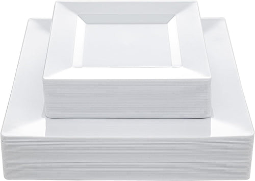 60PCS White Square Plastic Plates, 30 Dinner & 30 Dessert Plates Heavy Duty, Fancy Disposable Plates for Party, Wedding and other Events